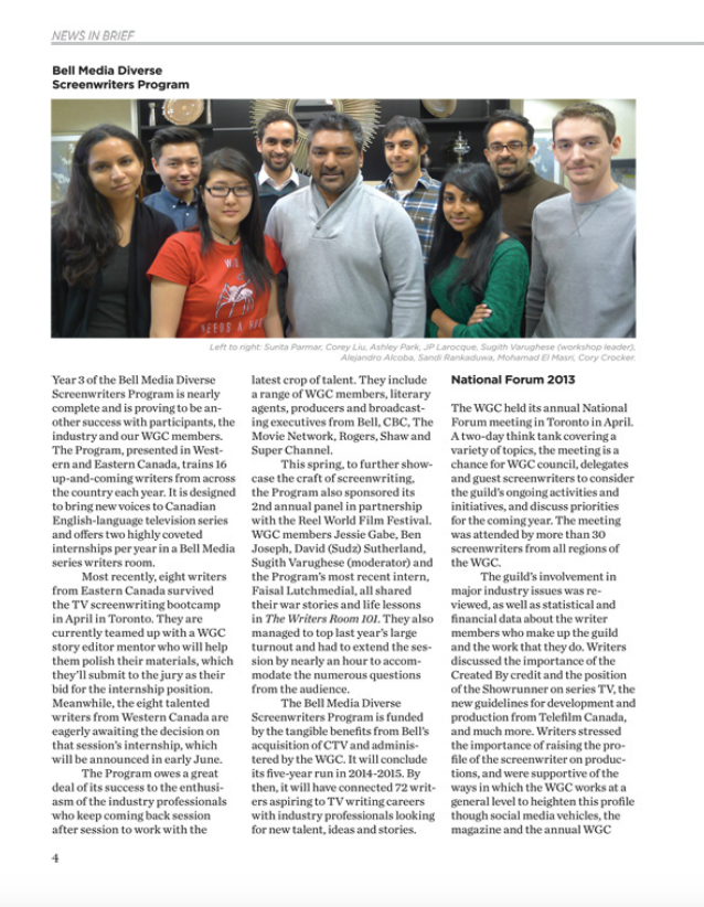 Diverse Screenwriters Program for Television Writing, Writers Guild of Canada